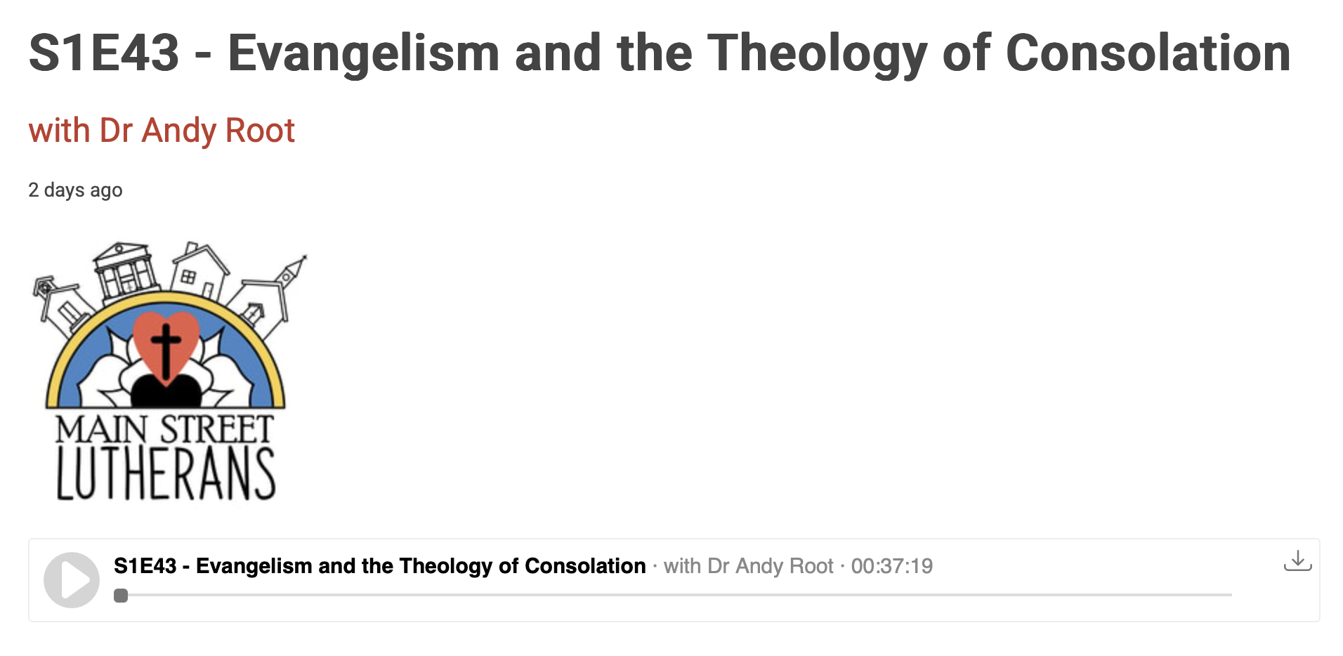 S1E43 – Evangelism and the Theology of Consolation Dr Andy Root, Olson Baalson Professor of Youth and Family Ministry at Luther Seminary, helps us talk about Evangelism throu